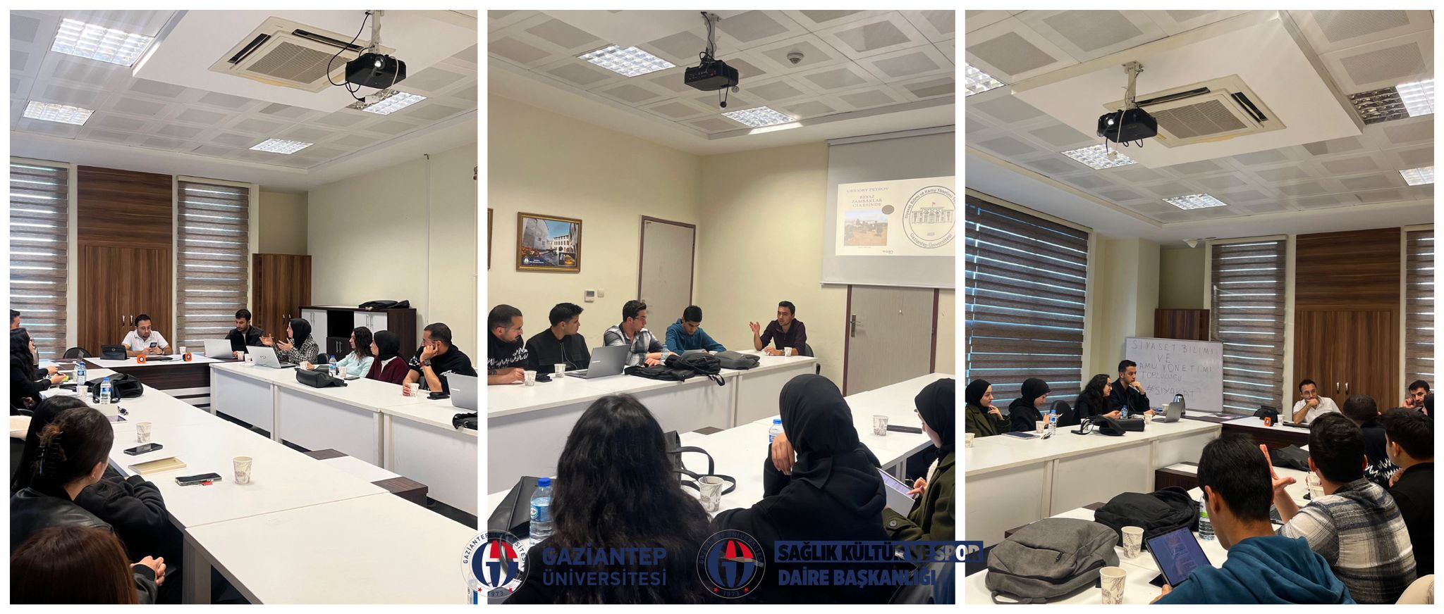 SKS, Kültür ve Spor Müdürlüğümüze bağlı topluluk başkanlarımızla bir araya geldik. Toplantımıza Rektör Yardımcımız Sn. Prof. Dr. Bayram Çetin, Genel Sekreterimiz Prof. Dr. Taner Akçacı, Daire Başkanımız Mehmet Fatih Evyapan katılım sağlamıştır. Yeni eğiti