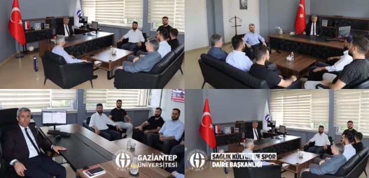 “Gaziantep Üniversitesi eski Rektör Yardımcısı Sayın Prof. Dr. Recep Yumrutaş, Sağlık Kültür ve Spor Daire Başkanı Mehmet Fatih Evyapan’a ziyarette bulundu.”