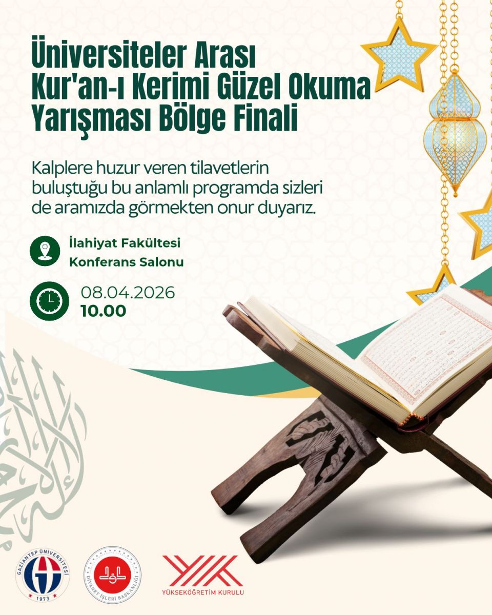 Üniversiteler Arası Kur’an-ı Kerimi Güzel Okuma Yarışması Bölge Finali’nde, gönüllere dokunan tilavetlere birlikte şahit olmak için sizleri de aramızda görmekten onur duyarız.